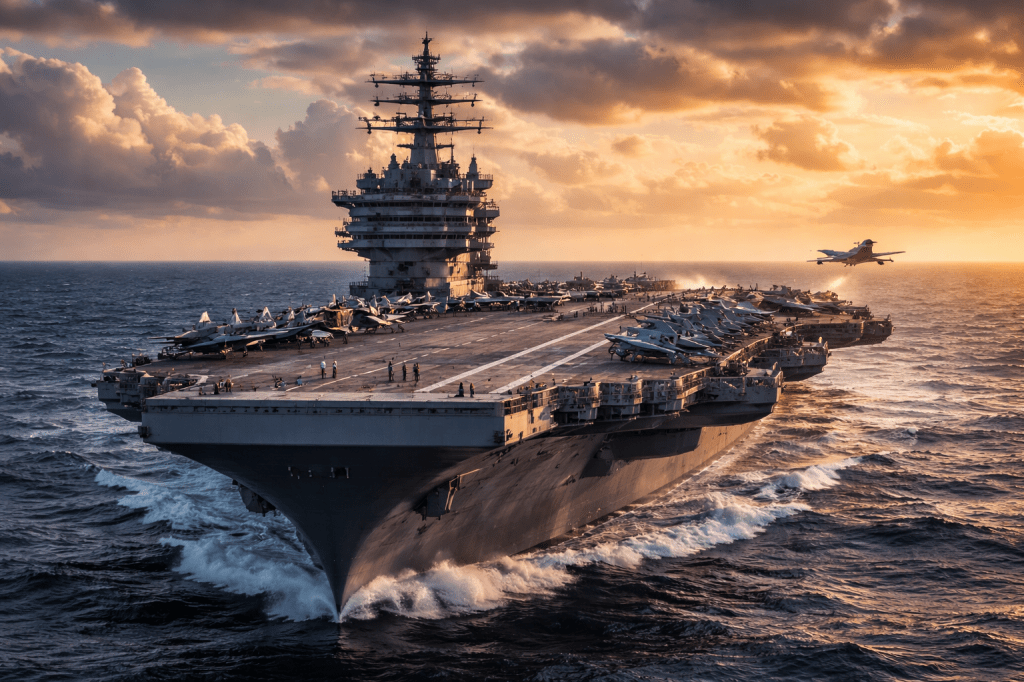 The USS Abraham Lincoln has participated in major global operations, from the Middle East to the Pacific. It has supported combat missions, humanitarian assistance, disaster relief, and strategic deterrence efforts. Its flight deck is a stage where fighter jets launch within seconds, transforming steel and ocean into speed and air dominance. Every launch and landing represents coordination, discipline, and precision.
