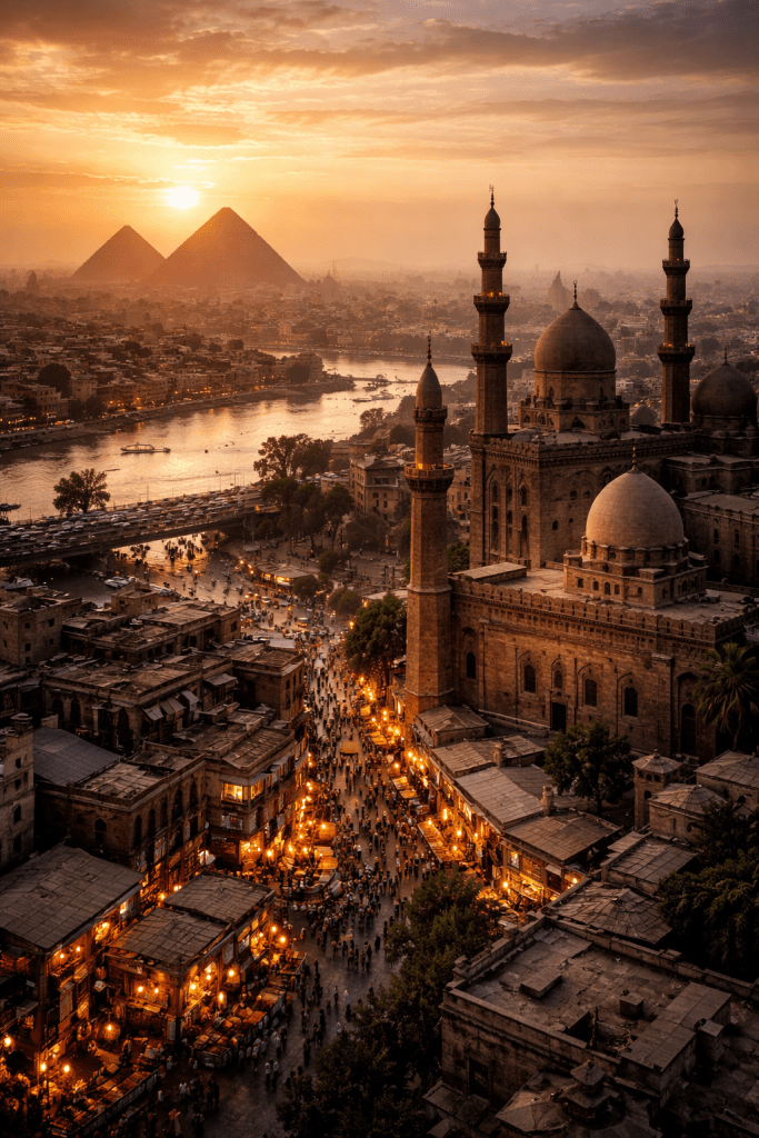 Cairo is not just a city you visit. It is a city you feel in your bones. The moment you step into Cairo, you realize you are standing in a place where history is not locked inside museums — it walks beside you in the streets, echoes in the call to prayer, and rises in stone against the desert sky.